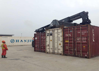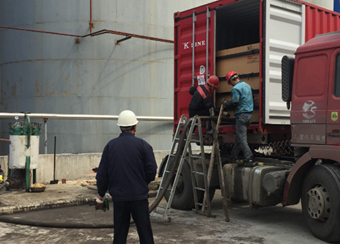 歐基港普通化工品液袋裝箱現場(chǎng):